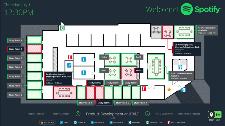 With a TouchLink Wayfinding Interface, users can view room availability, make a reservation, and find a room from a centralized location.
