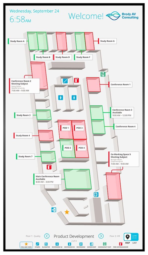 - The scheduling touch panels can stand alone, but they are much more effective when used alongside a wayfinding display and occupancy sensors
